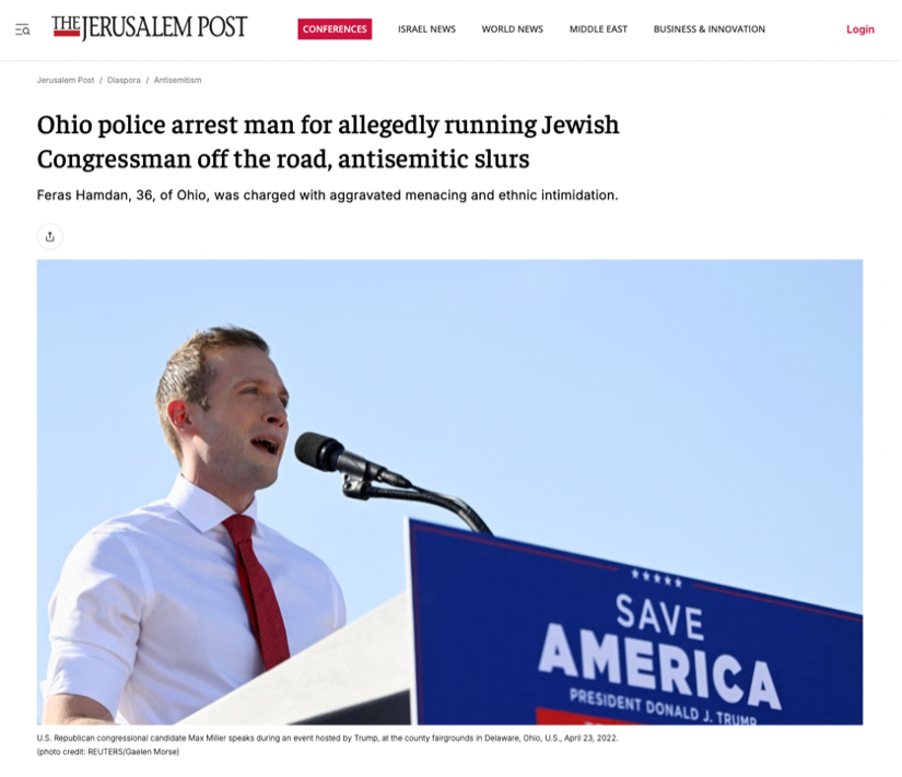 From there, a tidal wave of local, national, and international news coverage ensued, depicting Dr. Hamdan as a antisemitic “Jew hater” who had “run” a U.S. Congressman “off the road” and threatened to kill him and his family.